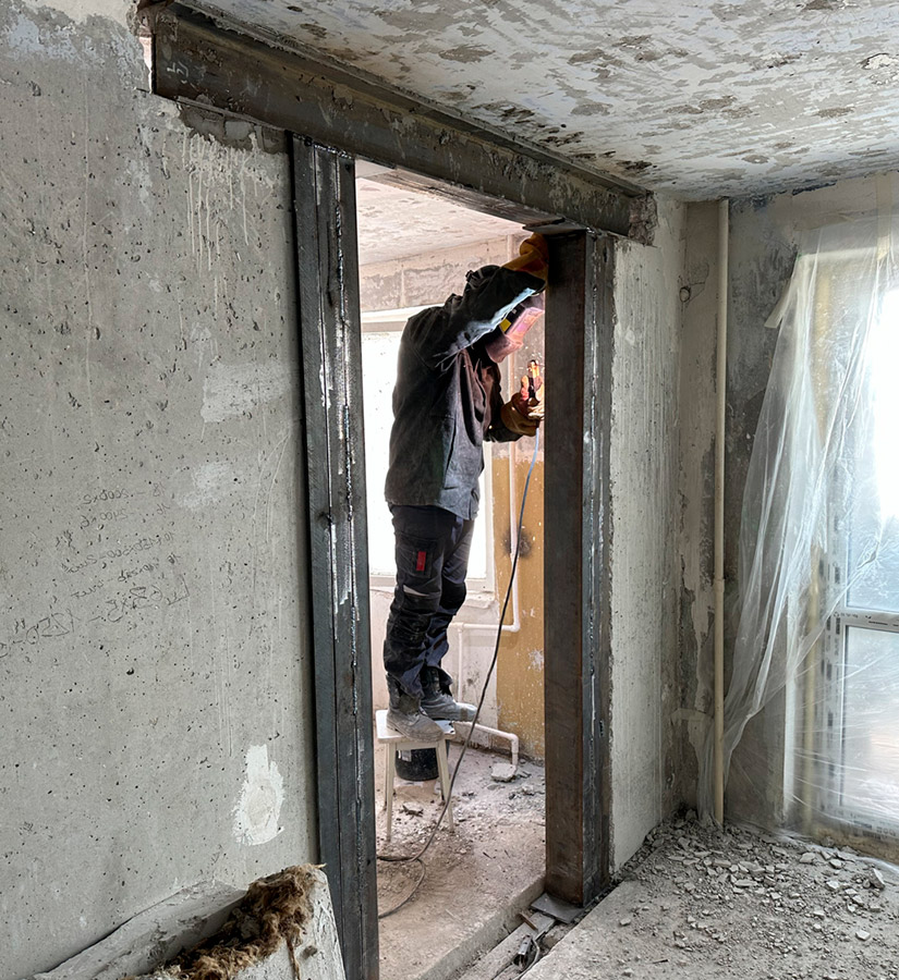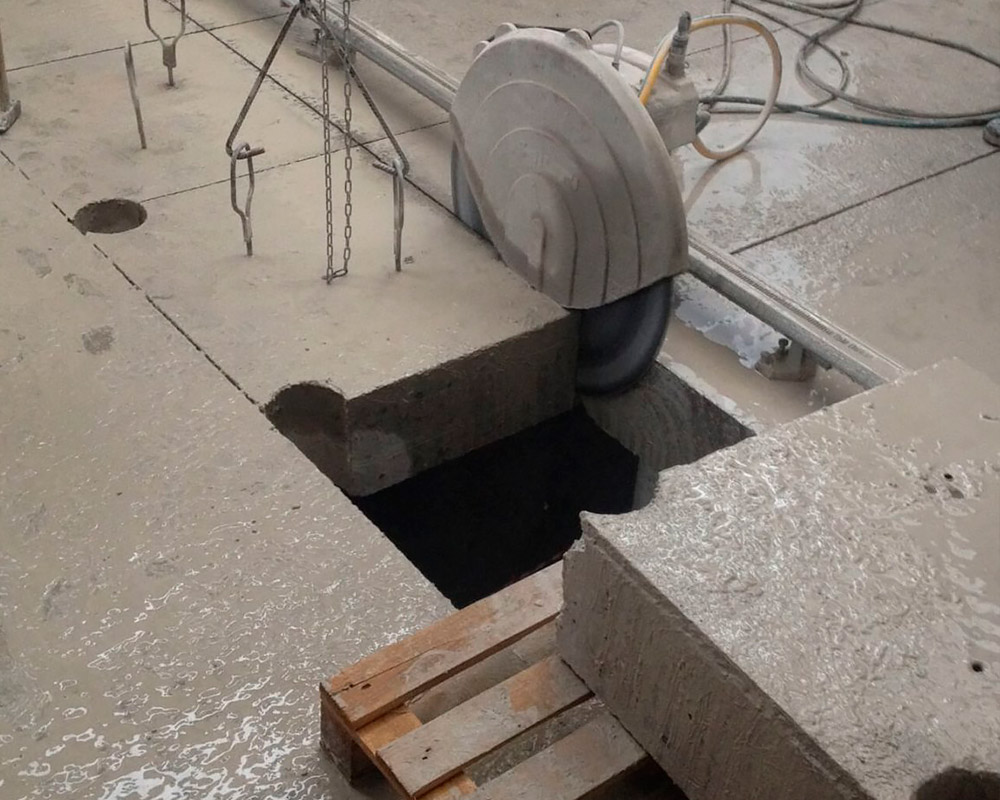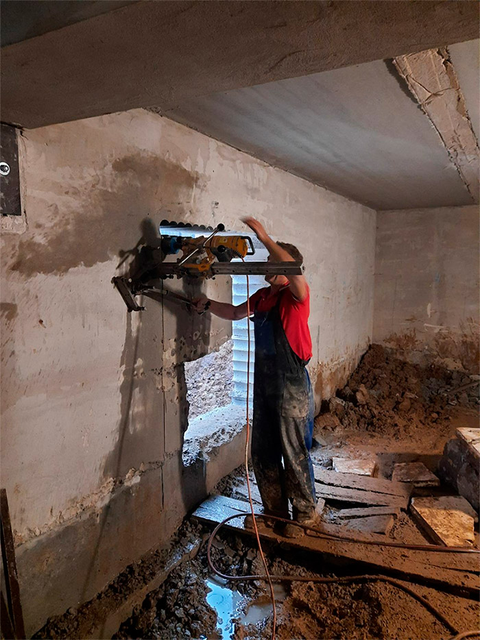 - Резка стен и перекрытий для установки дверей, окон, лифтовых шахт и технологических проемов;