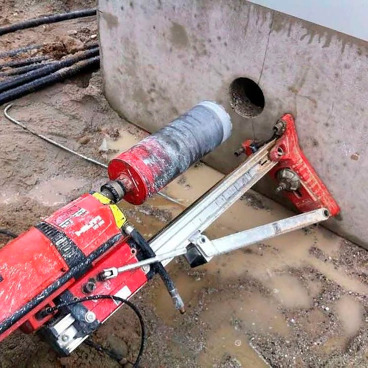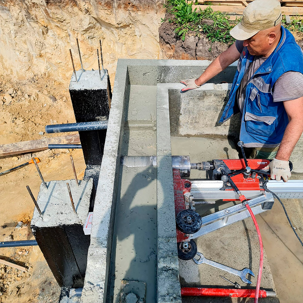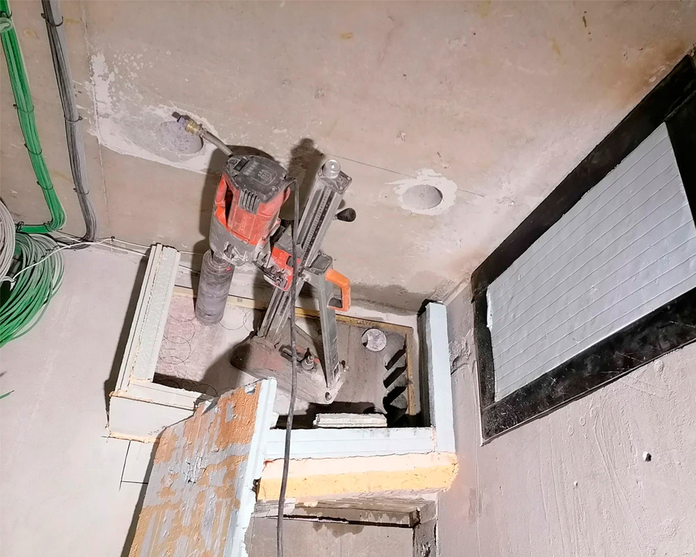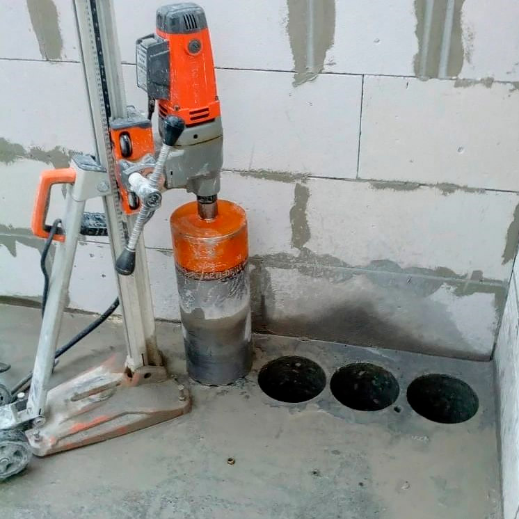 - Создание точных отверстий различного диаметра для прокладки коммуникаций, вентиляции, отопления и других инженерных систем;